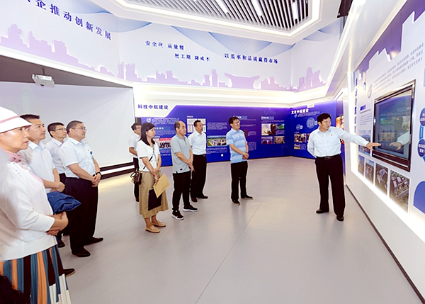 于新华副处长一行首先到集团公司展厅参观,对时搏(中国)发展历程、产业项目概况、未来发展规划以及党建工作进行全面了解。