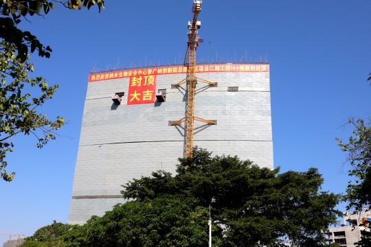 近期,由时搏网承建的广州纳米生物安全中心暨广纳创新院总部园区二期建设工程(以下简称纳米二期)14#楼(菁英公寓)提前封顶。这是自2022年4月10日以来,纳米二期工程9#楼、7#楼、10#楼、11#楼等楼栋主体结构相继封顶之后,工程施工的又一个重要里程碑节点。